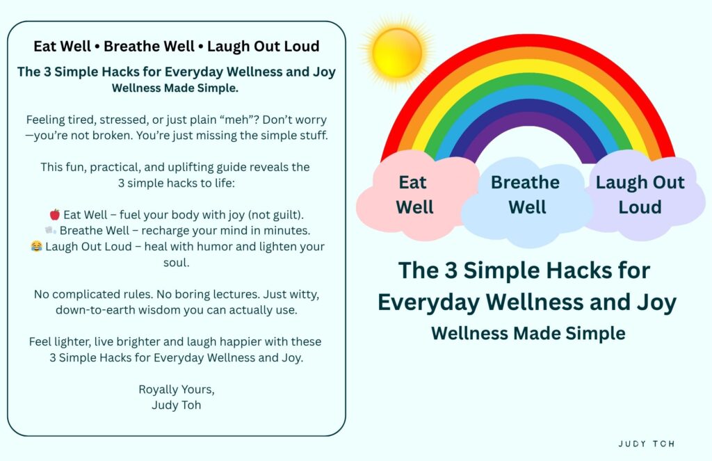 “Eat well, breathe well, and laugh out loud” isn’t just a catchy phrase- it’s a life philosophy. It’s about balance, joy, and remembering that wellness isn’t supposed to feel like punishment.